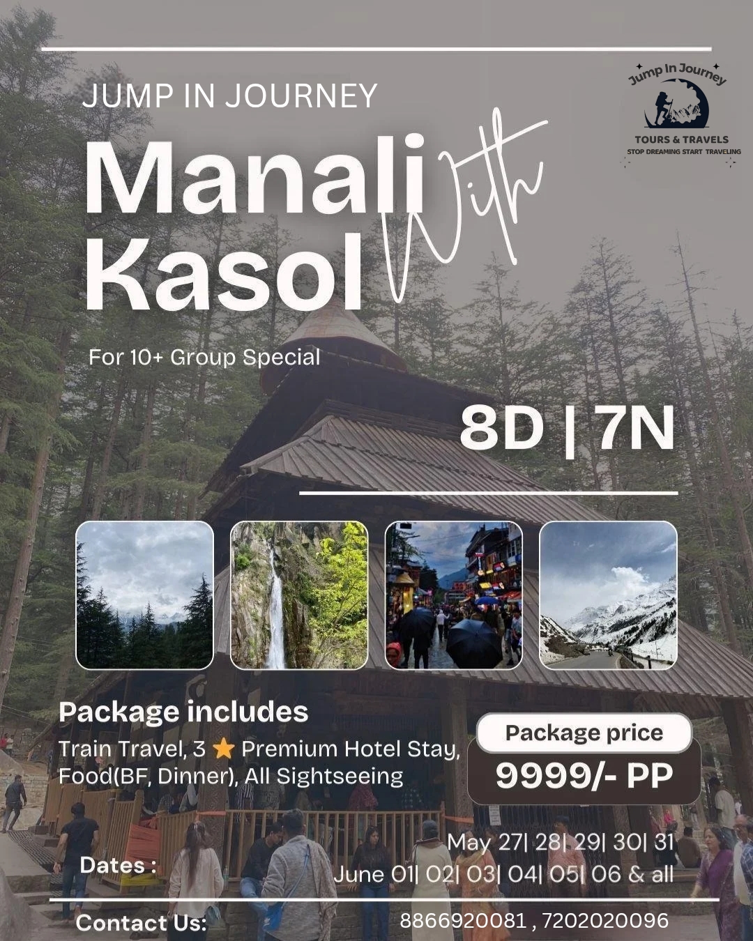 *JIJ Tourism**Manali + Kasol Camp 2025*Adventure + Nature = Pure Fun! βΊπ§ββοΈβοΈ*Packages:**π₯ Manali-Kaso